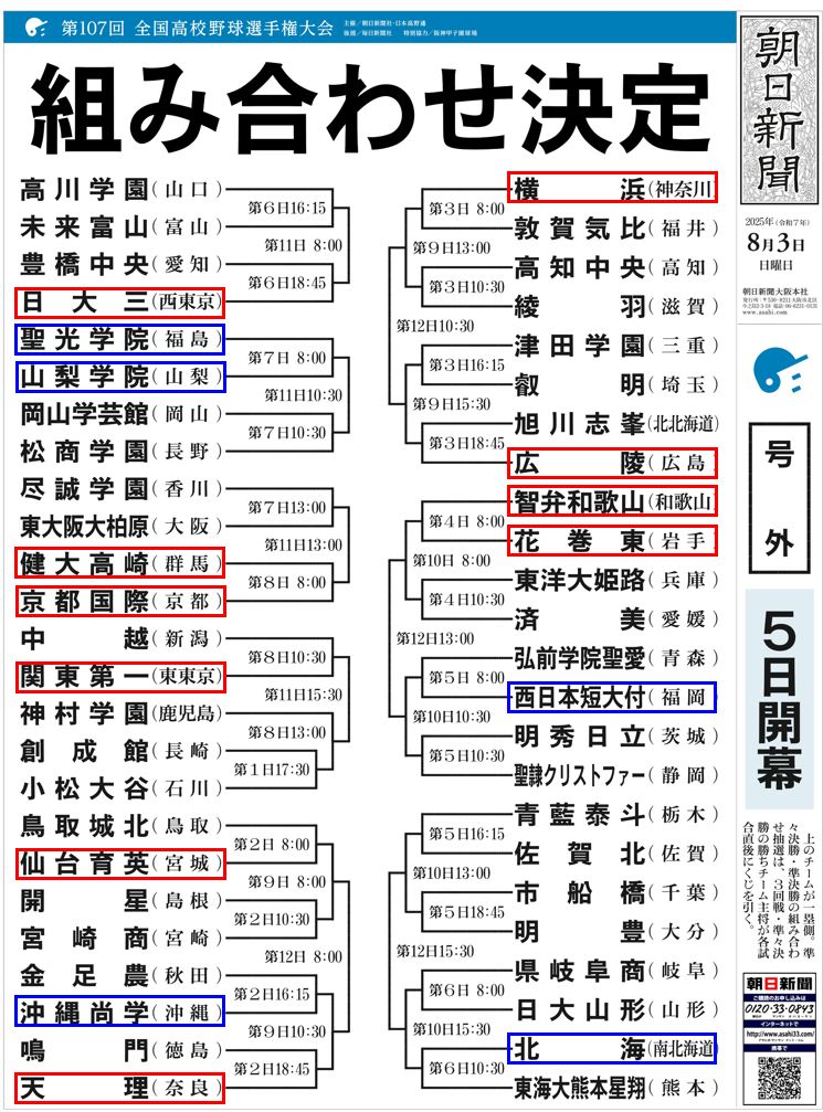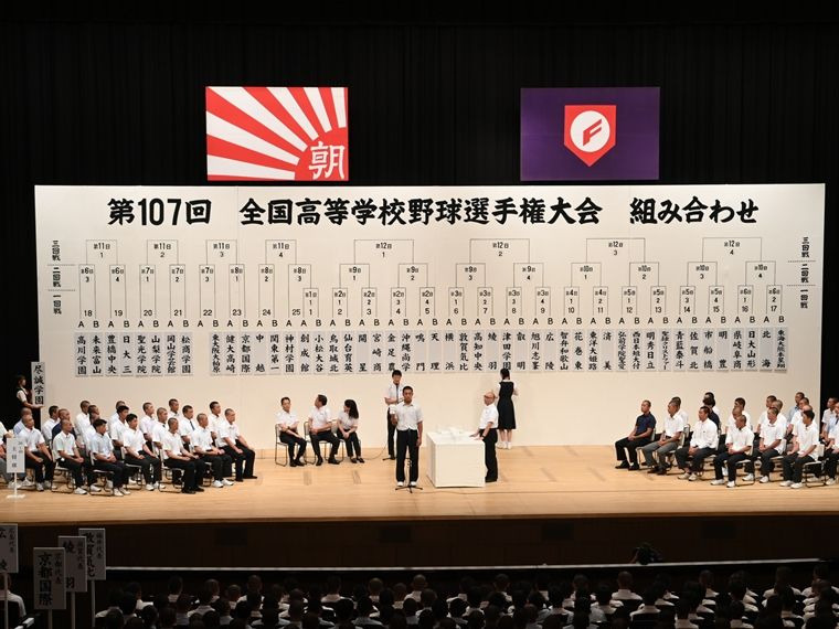 2025년 8월 3일, 오사카 키타구 나카노시마 페스티벌 홀에서 제107회 고시엔 본선 조별 추첨식이 진행되었다. 지난 8월 1일 온라인으로 조별 추첨이 진행된 개막식 경기 2팀을 제외한 나머지 47개 고교 대표 야구부 선수들 및 학교 관계자들은 이곳에 모여 자신들의 첫 상대가 누가 될지 긴장된 얼굴이었다.